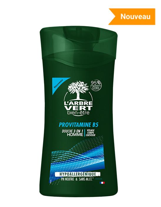 La douche 3 en 1 pour hommes L’ARBRE VERT bien-être est parfaitement adaptée pour laver le corps, le visage et les cheveux. Idéal pour les hommes pressés.