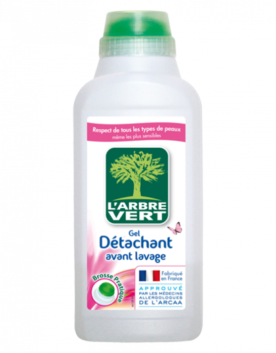 Le détachant L'Arbre Vert s'utilise pour faciliter et compléter l'élimination des taches difficiles ou tenaces lors du lavage en machine. Hypoallergénique, il convient aux peaux sensibles, atopiques. Il respecte efficacement votre linge et peut s’utiliser sur tous vos vêtements, blancs ou couleur.